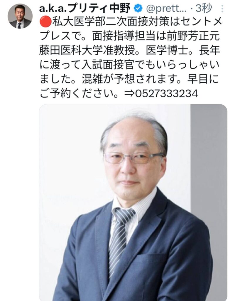 伊藤慈紘先生誕生!おめでとうございます! 名古屋高校からセントメプレスでの1年間の浪人生活を経て藤田保健衛生大学医学部に入学。6年後の今春藤田医科大学医学部を卒業し、このほど愛知県瀬戸市にある695床の大病院で研修医生活が始まった。 受かるわけはないからと嫌がっていた彼に、倍率五十倍を超えたその年の藤田後期試験に無理やりチャレンジさせたのは僕だった。 受かったはずはないからと発表当日父上とゴルフを楽しんでいた彼に、合格したぞ!と電話で一報を入れたのも僕だった。クラブハウスでシャワーを浴びたばかりの彼の第一声は「あ、どうしたんですか?」だった(笑)「どうしたもこうしたもない。受かったんだよ!」その後の数秒間続いた絶句が忘れられない。 スポーツマンで礼節をわきまえいつも爽やかな笑顔を絶やさない彼は、きっと患者からもコメディカルの方たちからも慕われる、素晴らしい医師になる。僕はそう信じている。